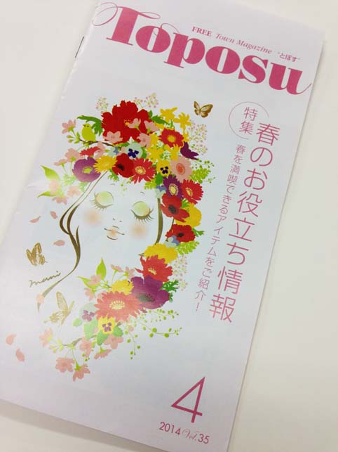 一声社さん発行のタウンマガジン“とぽす”4月号の「春のお役立ち情報」に母の日バルーンアレンジメントの紹介が載ってます。