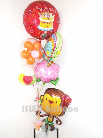 蝶やお花などたくさんのバルーンを、リンキーモンキーが運んでくれます。