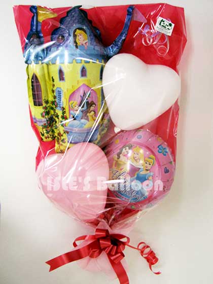 登録No ib090531 プリンセスのお城を象ったバルーンに、ピンクのプリンセスバースデーメッセージバルーンが入った、女の子に大人気のプリンセスバンチです。