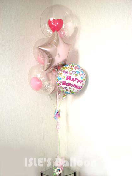 登録No ib090851 やさしいピンク系でまとめました。 インサイダーバルーンの中も透明に白プリントのバルーンでエレガントに!