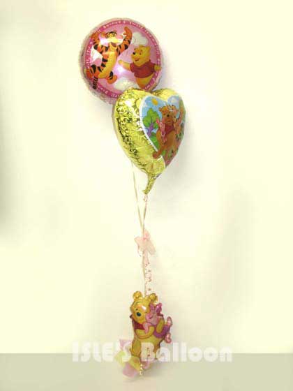 登録No ib090872 プーさんのメッセージバルーン、オモリ部分にはプーさんのミニバルーンをつけました。 コンパクトでお手軽な大きさです。