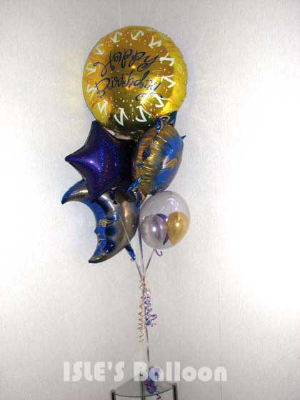 登録No ib090890 トップのジャンボバルーンと太陽・月のバルーンは同じシリーズなので、全体にまとまりのあるブーケになりました。 クールで大人っぽい印象です。