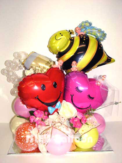 ハチあり、シャンパンありダブルバルーンありのにぎやかなアレンジです。