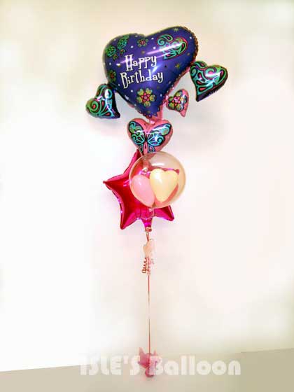ピンク・パープル系のカラーが大人にも大人気です。トップのクラスターバルーンは1つのバルーンでたくさんのバルーンに見えるので、意外にリーズナブル!