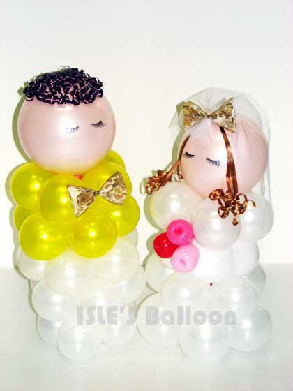大きさ約40センチ。新郎・新婦ともにドレス・タキシードのカラーが変更できます。こちらの新郎はパールシトリンイエロー・パールホワイト、新婦はパールホワイトです。