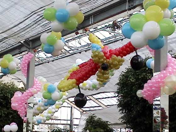 登録No ci050105 テーマは「大空」。 長期装飾なので、すべてデコバルーンを使用。 大きな温室全体を使った空間装飾です。 この商品に関するお問い合わせはこちらから (登録Noを添えて下さい)